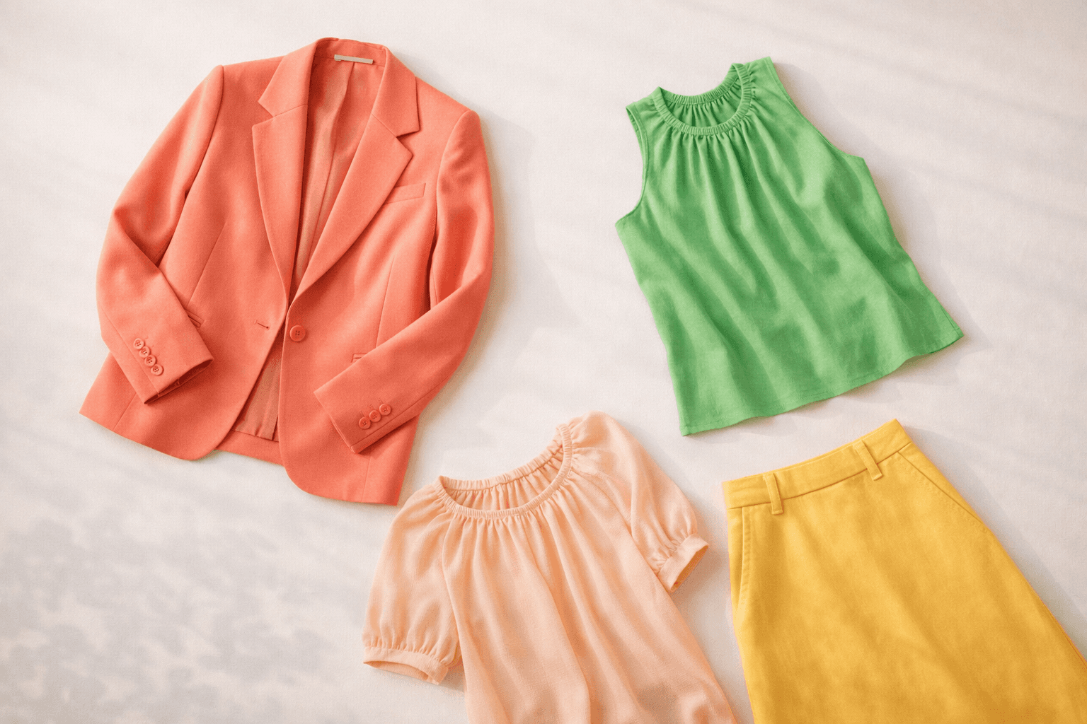 Learn to read undertones, not color names. Train your eye to spot warmth. Every color in your palette leans golden or yellow — even your greens should lean lime rather than forest, your pinks should lean peach rather than cool rose. Forget the name on the label and look at the actual hue.